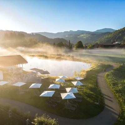 Herzstück ist der großzügige Wellnessbereich mit Infinity-Pool, Saunalandschaft, Ruhezonen und speziellen Golf-Anwendungen, ergänzt durch den hoteleigenen 2500m² großen Naturbadesee. Verpasse nicht das Bergfrühstück am Schwalbennest. Ein ganz besonderer Ort hoch oben inmitten der Natur.